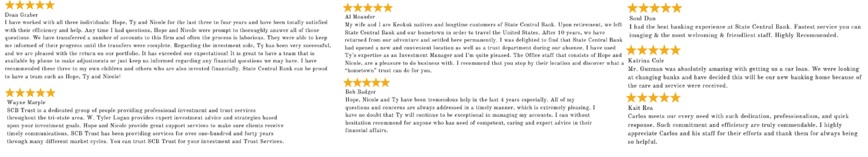 Settling an estate can be a tough and heartbreaking situation. Let State Central Bank's trusted advisors help you through your difficult time.